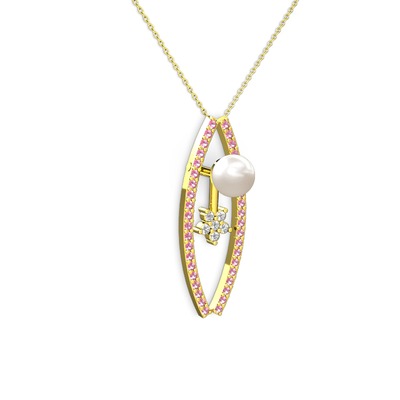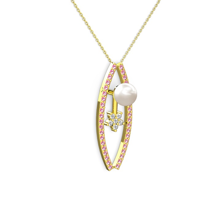 Inci, pembe kuvars ve pırlanta 18 ayar altın kolye (0.066 karat, 40 cm altın rolo zincir)