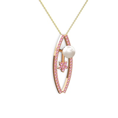 Inci ve pembe kuvars 925 ayar rose altın kaplama gümüş kolye (40 cm altın rolo zincir)