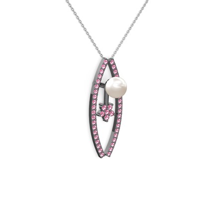 Inci ve pembe kuvars 925 ayar siyah rodyum kaplama gümüş kolye (40 cm beyaz altın rolo zincir)