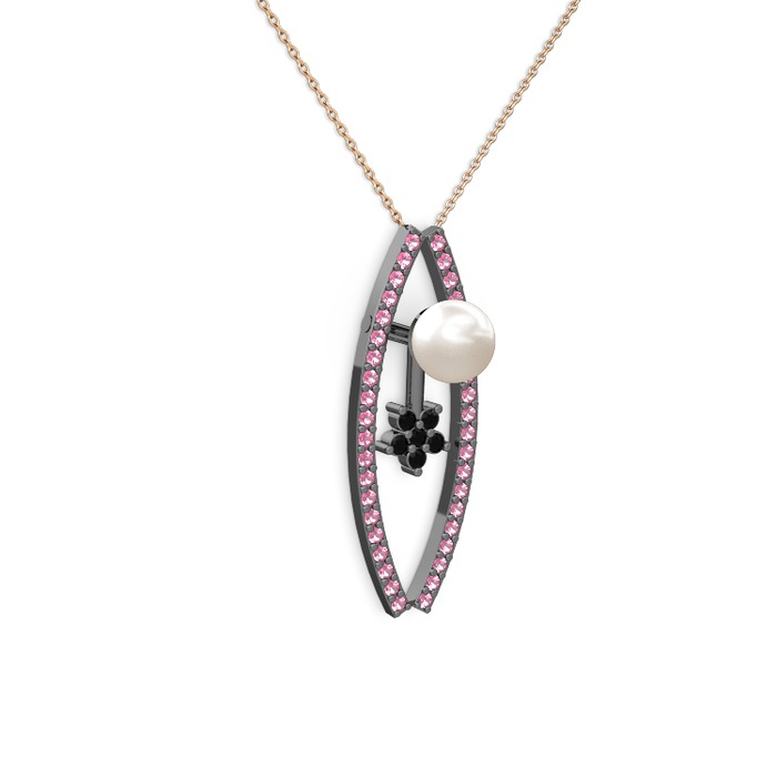 Inci, pembe kuvars ve siyah zirkon 925 ayar siyah rodyum kaplama gümüş kolye (40 cm gümüş rolo zincir)