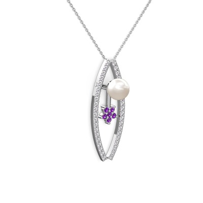 Inci, pırlanta ve ametist 8 ayar beyaz altın kolye (0.3 karat, 40 cm beyaz altın rolo zincir)