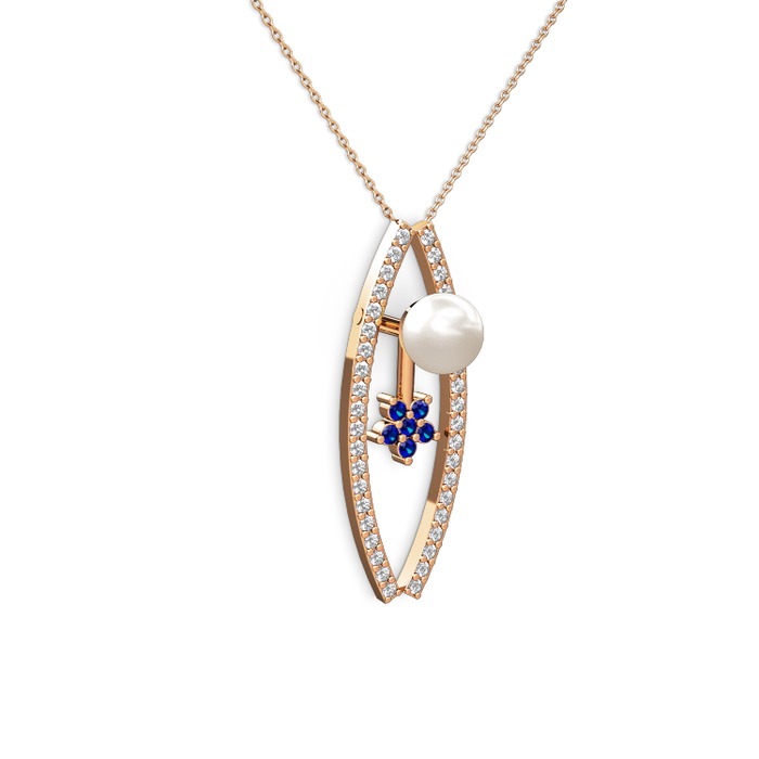 Inci, pırlanta ve lab safir 8 ayar rose altın kolye (0.3 karat, 40 cm rose altın rolo zincir)