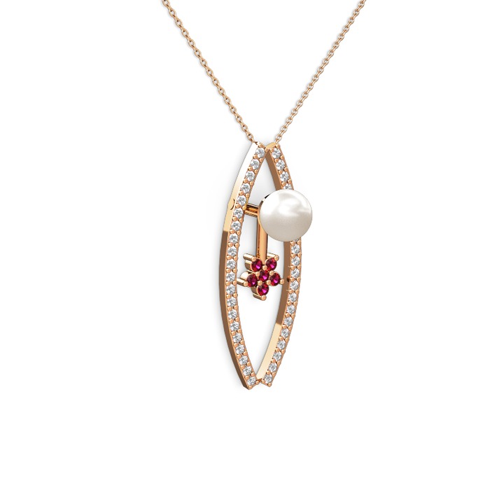 Inci, pırlanta ve rodolit garnet 925 ayar rose altın kaplama gümüş kolye (0.3 karat, 40 cm rose altın rolo zincir)