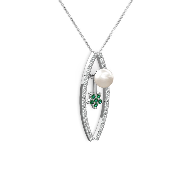 Inci, pırlanta ve yeşil kuvars 925 ayar gümüş kolye (0.3 karat, 40 cm beyaz altın rolo zincir)