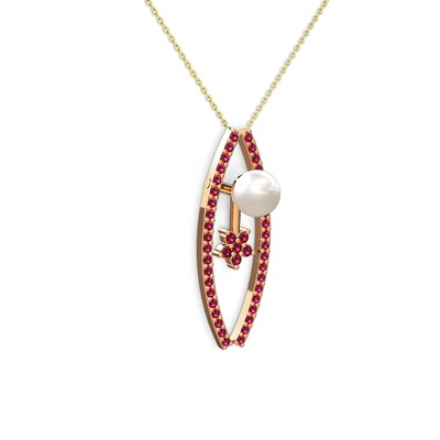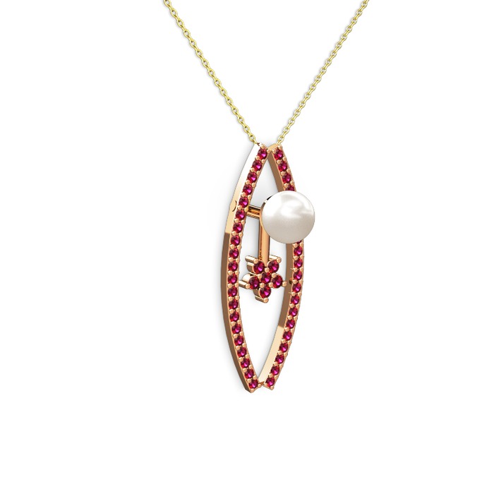 Inci ve rodolit garnet 14 ayar rose altın kolye (40 cm altın rolo zincir)
