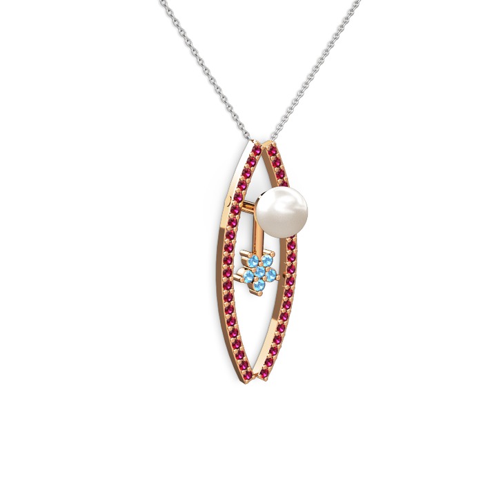 Inci, rodolit garnet ve akuamarin 8 ayar rose altın kolye (40 cm beyaz altın rolo zincir)