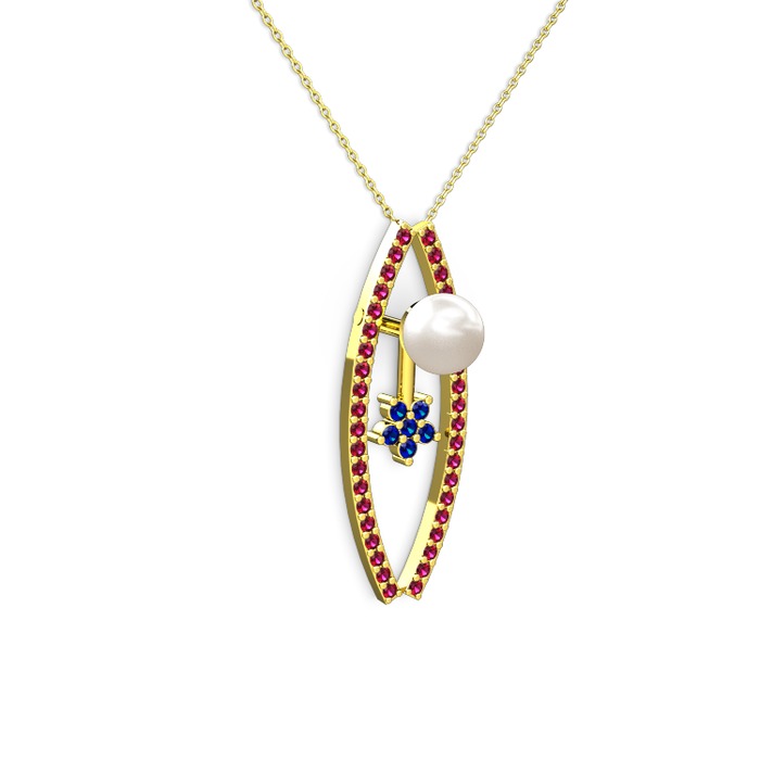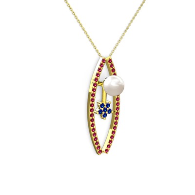 Inci, rodolit garnet ve lab safir 925 ayar altın kaplama gümüş kolye (40 cm altın rolo zincir)
