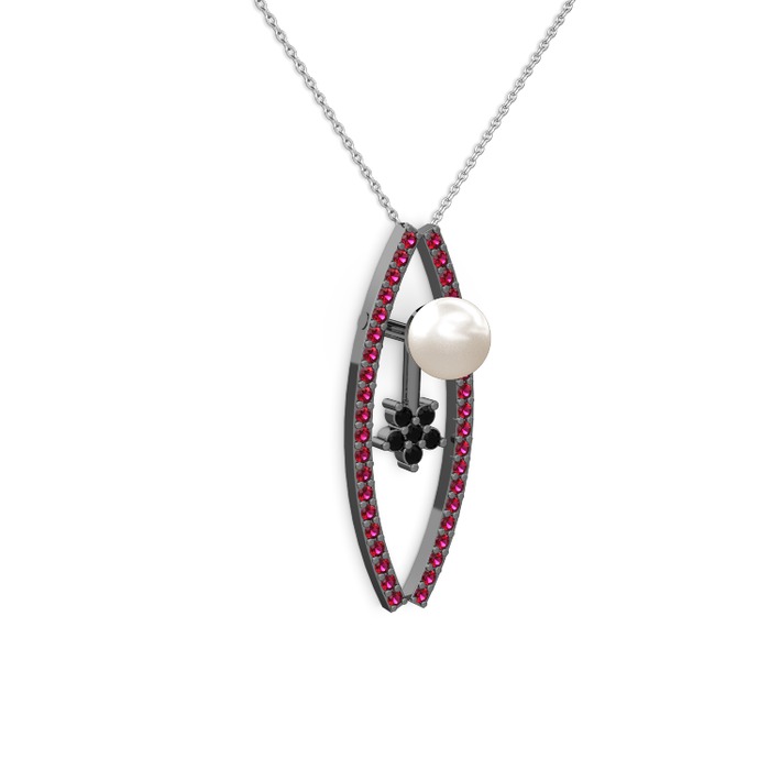 Inci, rodolit garnet ve siyah zirkon 925 ayar siyah rodyum kaplama gümüş kolye (40 cm beyaz altın rolo zincir)