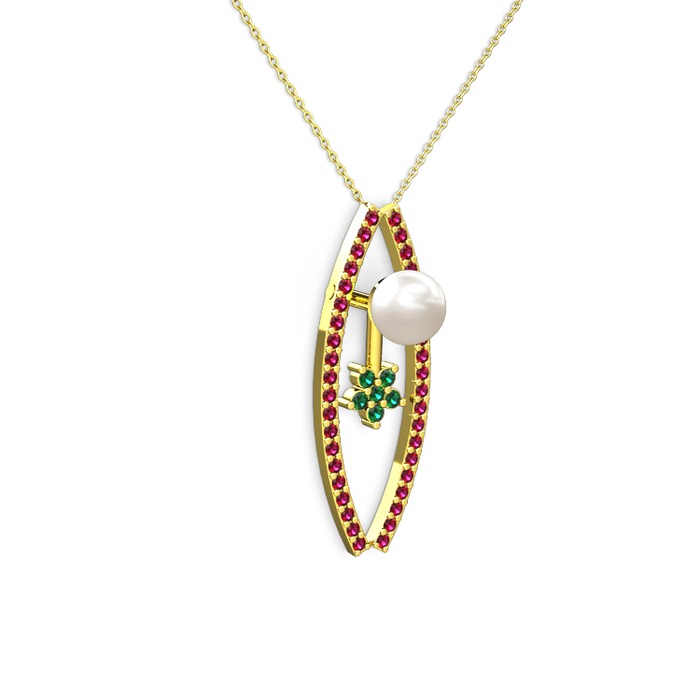 Inci, rodolit garnet ve yeşil kuvars 18 ayar altın kolye (40 cm altın rolo zincir)