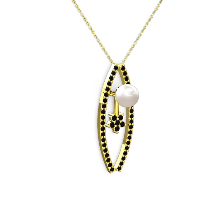 Inci ve siyah zirkon 14 ayar altın kolye (40 cm altın rolo zincir)