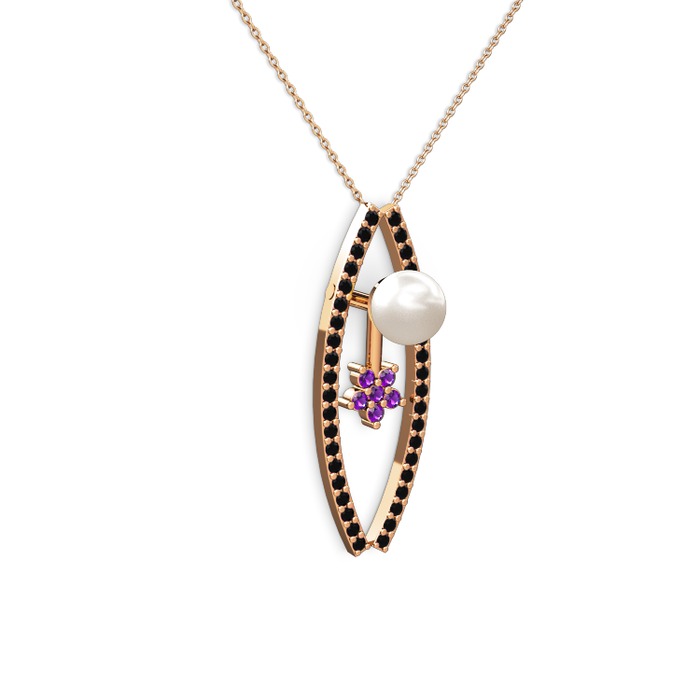 Inci, siyah zirkon ve ametist 18 ayar rose altın kolye (40 cm rose altın rolo zincir)
