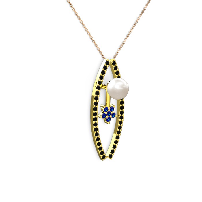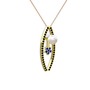 Inci, siyah zirkon ve lab safir 8 ayar altın kolye (40 cm rose altın rolo zincir)