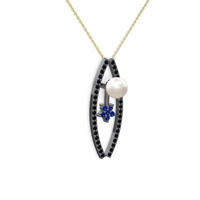 Inci, siyah zirkon ve lab safir 925 ayar siyah rodyum kaplama gümüş kolye (40 cm gümüş rolo zincir)