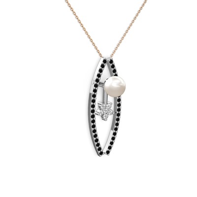 Inci, siyah zirkon ve pırlanta 8 ayar beyaz altın kolye (0.066 karat, 40 cm rose altın rolo zincir)