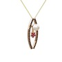 Inci, siyah zirkon ve rodolit garnet 14 ayar rose altın kolye (40 cm gümüş rolo zincir)