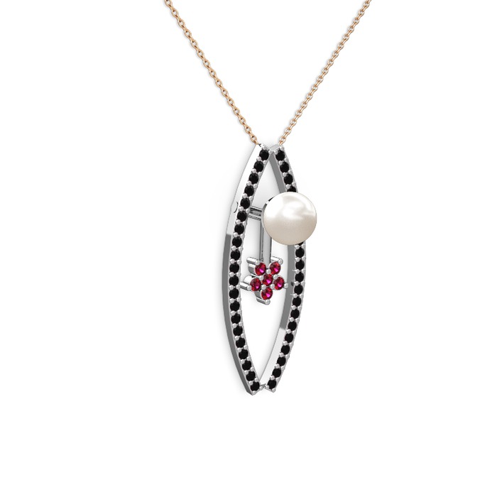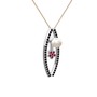 Inci, siyah zirkon ve rodolit garnet 18 ayar beyaz altın kolye (40 cm rose altın rolo zincir)