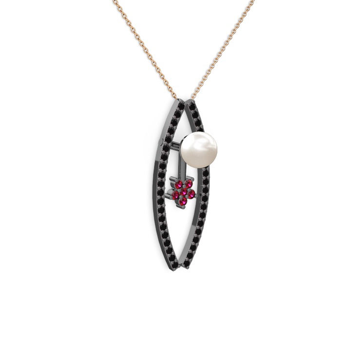 Inci, siyah zirkon ve rodolit garnet 925 ayar siyah rodyum kaplama gümüş kolye (40 cm rose altın rolo zincir)