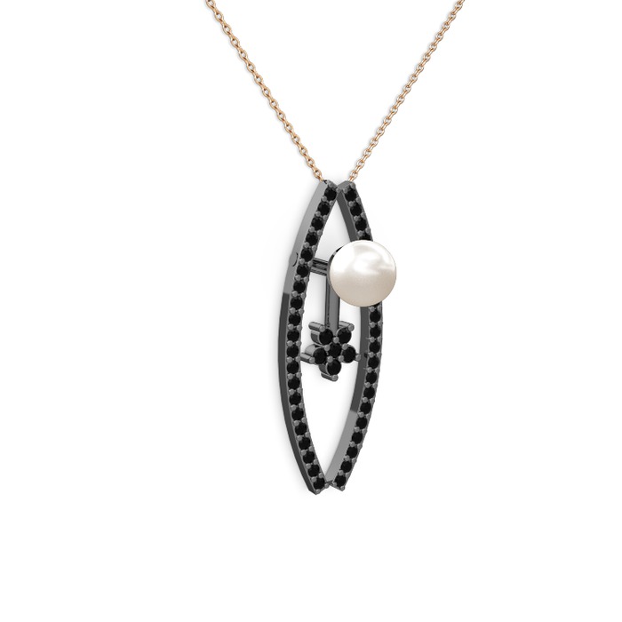 Inci ve siyah zirkon 925 ayar siyah rodyum kaplama gümüş kolye (40 cm rose altın rolo zincir)