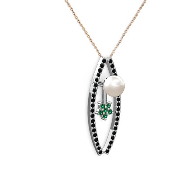 Inci, siyah zirkon ve yeşil kuvars 8 ayar beyaz altın kolye (40 cm rose altın rolo zincir)