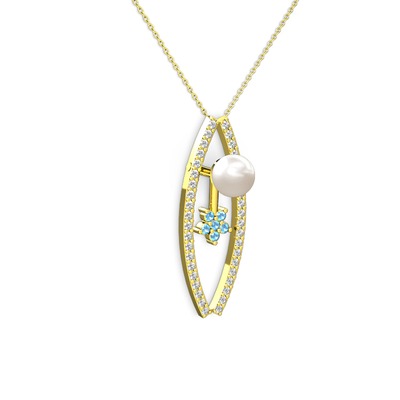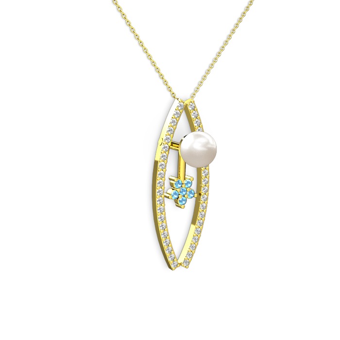 Inci, swarovski ve akuamarin 925 ayar altın kaplama gümüş kolye (40 cm altın rolo zincir)
