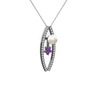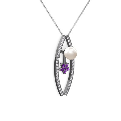 Inci, swarovski ve ametist 925 ayar siyah rodyum kaplama gümüş kolye (40 cm beyaz altın rolo zincir)