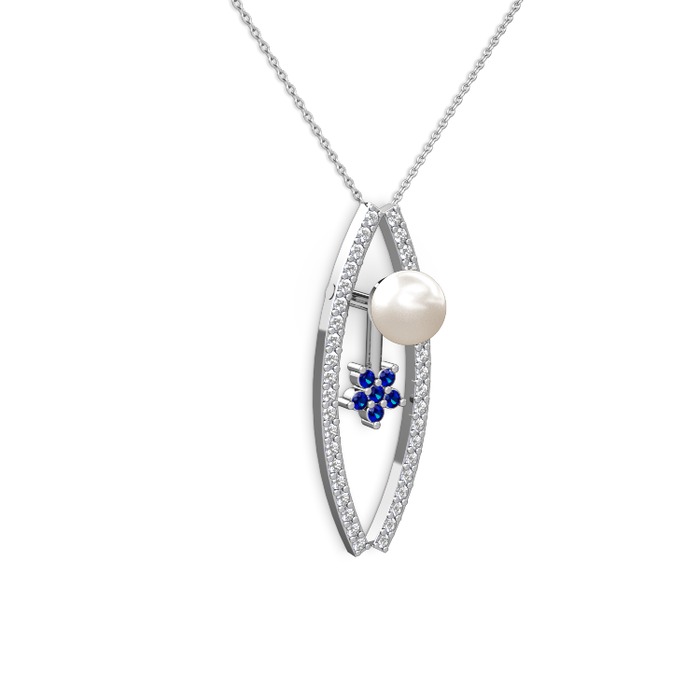 Inci, swarovski ve lab safir 925 ayar gümüş kolye (40 cm gümüş rolo zincir)