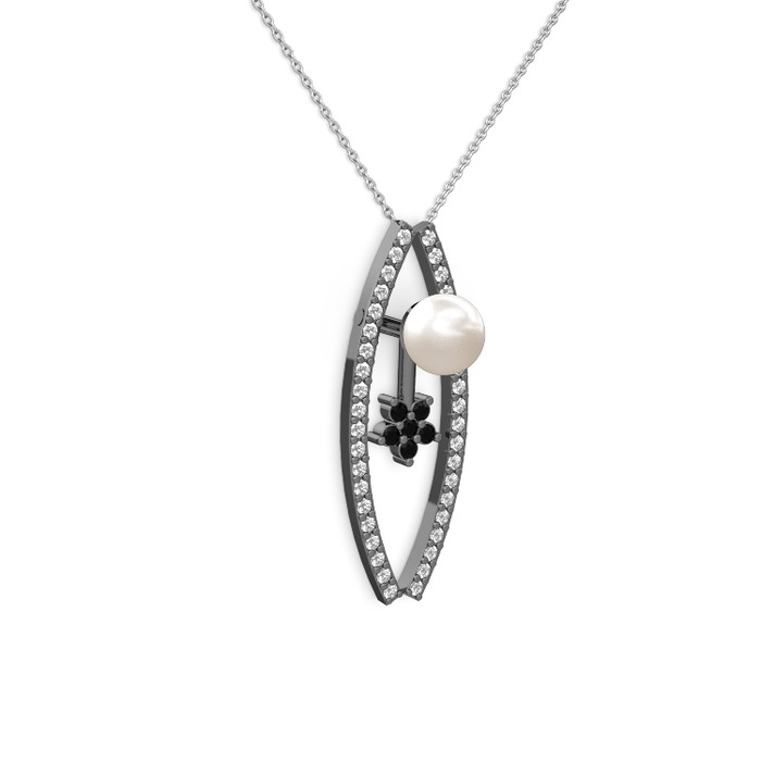 Inci, swarovski ve siyah zirkon 925 ayar siyah rodyum kaplama gümüş kolye (40 cm beyaz altın rolo zincir)