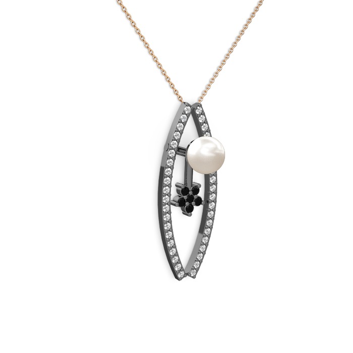 Inci, swarovski ve siyah zirkon 925 ayar siyah rodyum kaplama gümüş kolye (40 cm rose altın rolo zincir)