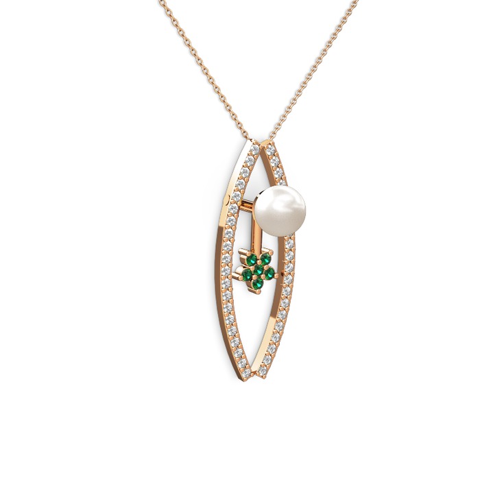 Inci, swarovski ve yeşil kuvars 925 ayar rose altın kaplama gümüş kolye (40 cm gümüş rolo zincir)