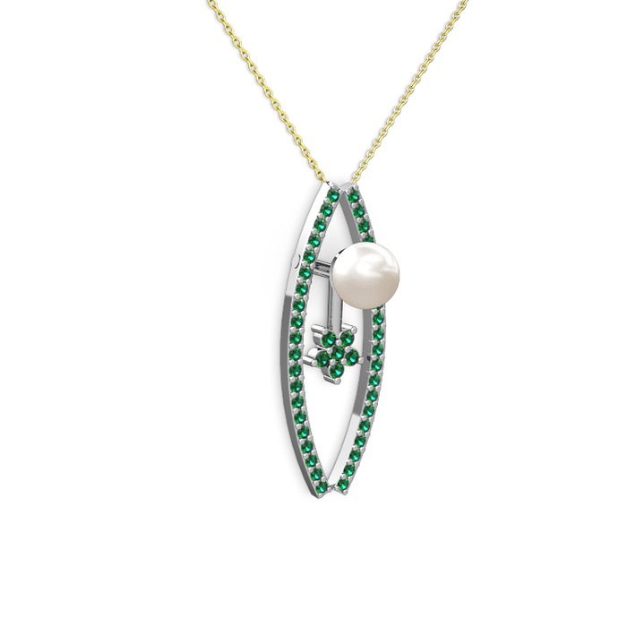 Inci ve yeşil kuvars 18 ayar beyaz altın kolye (40 cm altın rolo zincir)