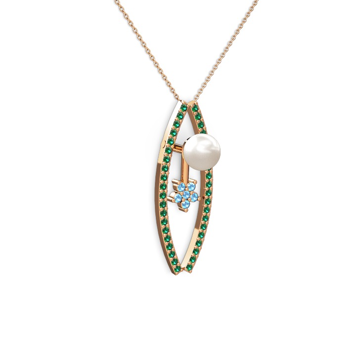 Inci, yeşil kuvars ve akuamarin 18 ayar rose altın kolye (40 cm rose altın rolo zincir)