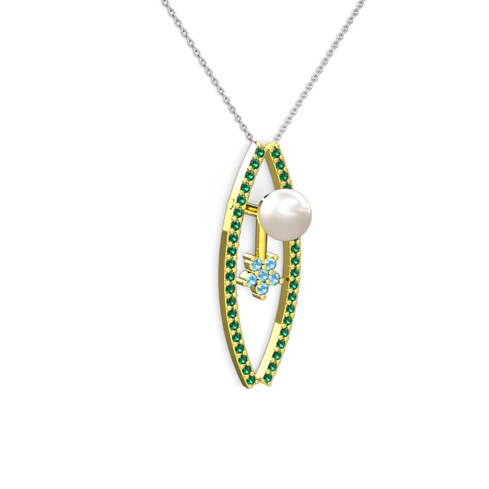 Inci, yeşil kuvars ve akuamarin 8 ayar altın kolye (40 cm beyaz altın rolo zincir)