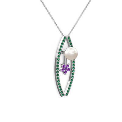 Inci, yeşil kuvars ve ametist 925 ayar gümüş kolye (40 cm gümüş rolo zincir)