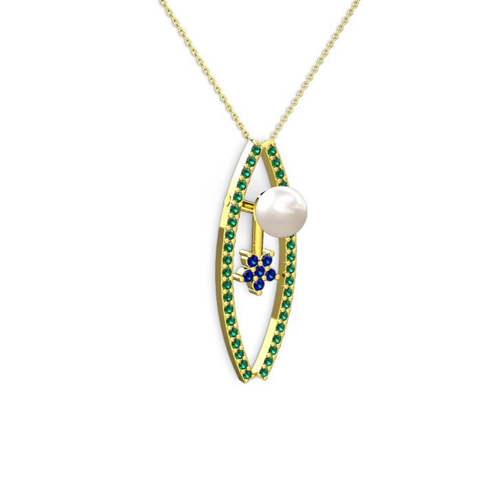 Inci, yeşil kuvars ve lab safir 18 ayar altın kolye (40 cm altın rolo zincir)