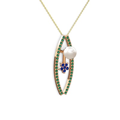 Inci, yeşil kuvars ve lab safir 8 ayar rose altın kolye (40 cm altın rolo zincir)
