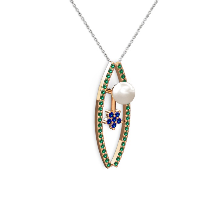 Inci, yeşil kuvars ve lab safir 8 ayar rose altın kolye (40 cm beyaz altın rolo zincir)