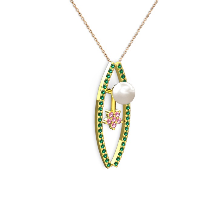 Inci, yeşil kuvars ve pembe kuvars 8 ayar altın kolye (40 cm rose altın rolo zincir)