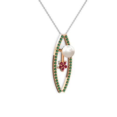 Inci, yeşil kuvars ve rodolit garnet 8 ayar rose altın kolye (40 cm beyaz altın rolo zincir)