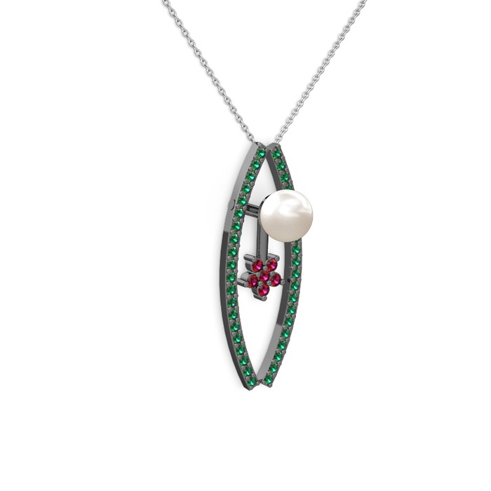 Inci, yeşil kuvars ve rodolit garnet 925 ayar siyah rodyum kaplama gümüş kolye (40 cm beyaz altın rolo zincir)