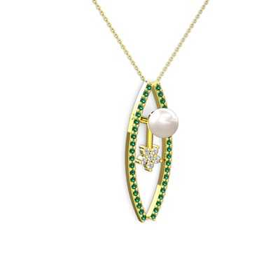 Inci, yeşil kuvars ve swarovski 8 ayar altın kolye (40 cm altın rolo zincir)