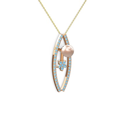 Pembe inci ve akuamarin 14 ayar rose altın kolye (40 cm gümüş rolo zincir)