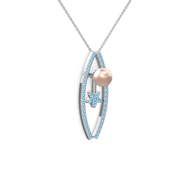 Pembe inci ve akuamarin 925 ayar gümüş kolye (40 cm beyaz altın rolo zincir)