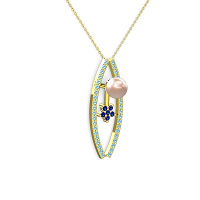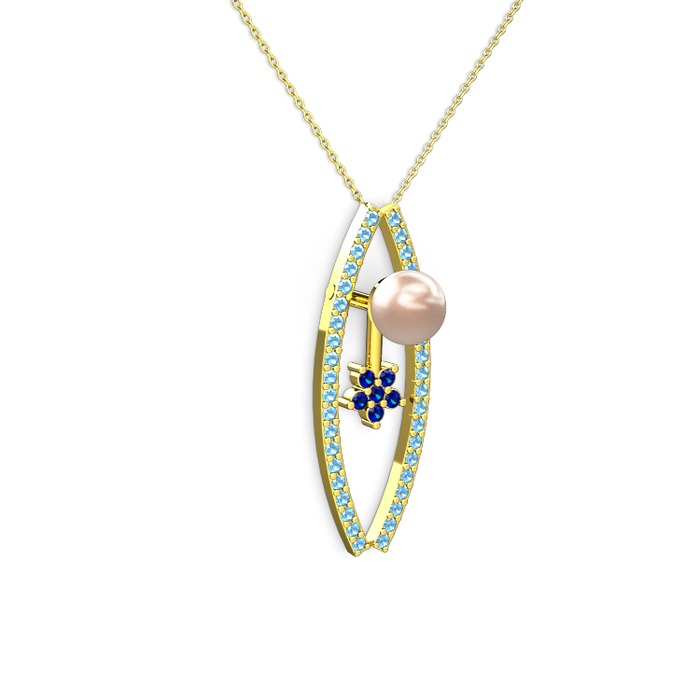 Pembe inci, akuamarin ve lab safir 8 ayar altın kolye (40 cm altın rolo zincir)