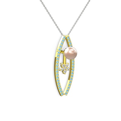Pembe inci, akuamarin ve pırlanta 8 ayar altın kolye (0.066 karat, 40 cm beyaz altın rolo zincir)