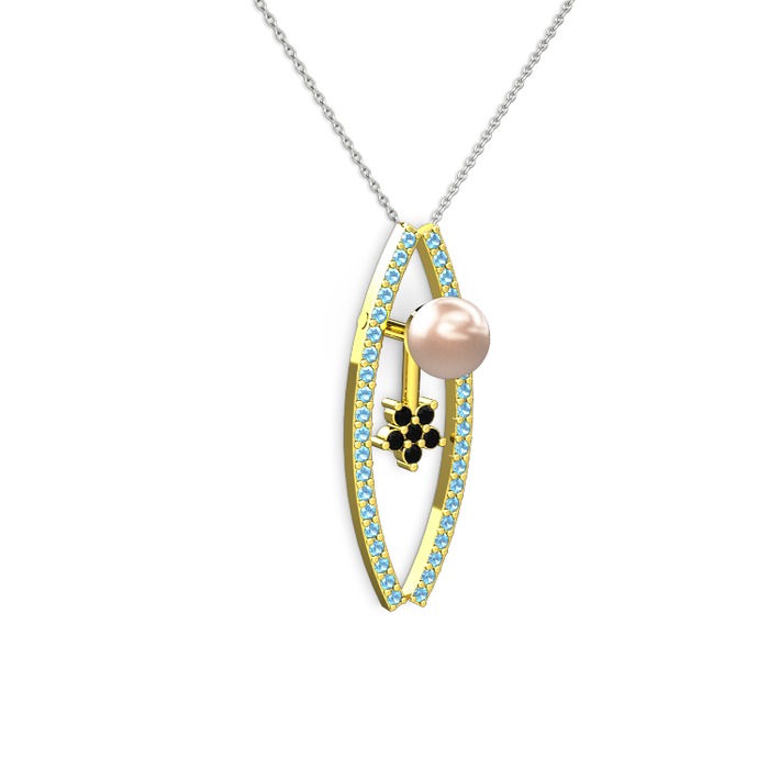 Pembe inci, akuamarin ve siyah zirkon 925 ayar altın kaplama gümüş kolye (40 cm beyaz altın rolo zincir)