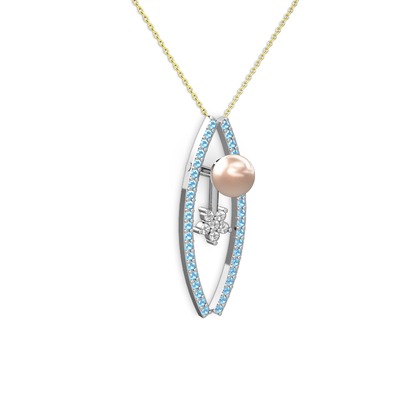 Pembe inci, akuamarin ve swarovski 14 ayar beyaz altın kolye (40 cm altın rolo zincir)