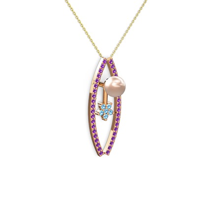 Pembe inci, ametist ve akuamarin 18 ayar rose altın kolye (40 cm altın rolo zincir)