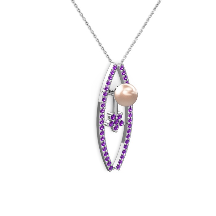 Pembe inci ve ametist 925 ayar gümüş kolye (40 cm beyaz altın rolo zincir)