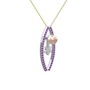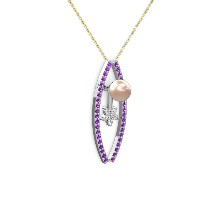 Pembe inci, ametist ve pırlanta 14 ayar beyaz altın kolye (0.066 karat, 40 cm altın rolo zincir)