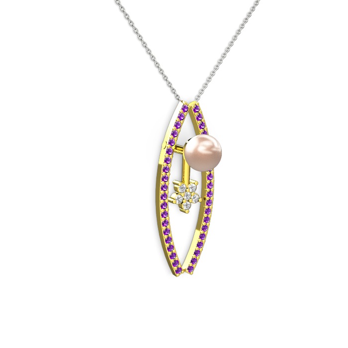 Pembe inci, ametist ve swarovski 8 ayar altın kolye (40 cm beyaz altın rolo zincir)
